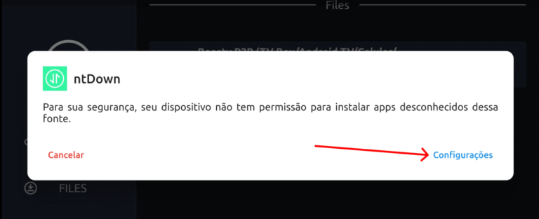6 – Agora que você já deu permissão ao ntDown, aperte a tecla voltar no seu controle remoto e inicie a instalação do aplicativo conforme demonstrado no passo 4- desse tutorial.